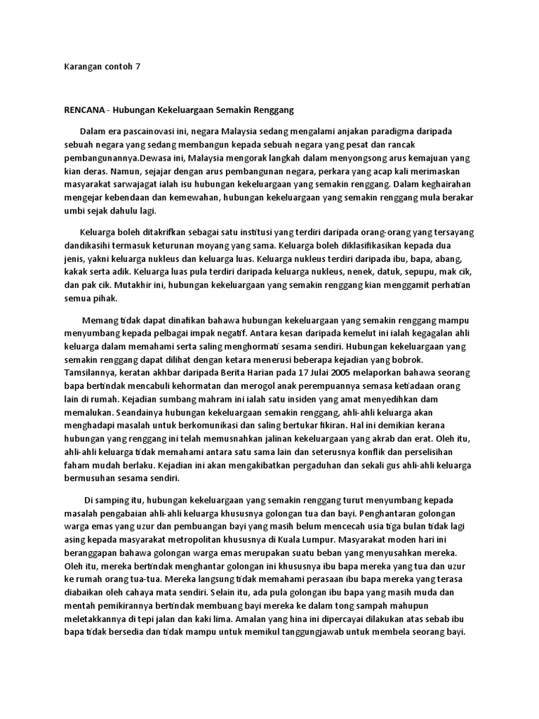 Nyatakan kepentingan-kepentingan mewujudkan perasaan kekeluargaan dalam kehidupan masyarakat dalam era globalisasi ini. Hal ini disebabkan oleh ibu bapa tidak rapat dengan anak-anak mereka. CONTOH KARANGAN - YANG MUDAH Sesuai untuk murid pencapaian sederhana Hubungan kekeluargaan sangat penting.